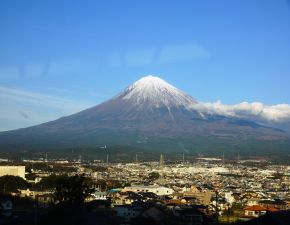 ●この区間は、駿河湾沿岸部から甲府盆地にかけて、富士山と赤石山脈(南アルプス)に挟まれた富士川の左岸(東側)を走るルートとなっている。また、今回のツアーの最初の目的でもあり、出発前から楽しみにしていたところである。なお、区間の北側は山岳路線であったが、南側は富士駅を出発してから西富士宮駅付近まで地形が開けており、所々で富士山の山景を望むことができたので、ここでは車窓からの富士山の画像を紹介します。