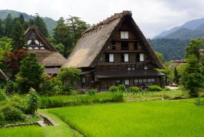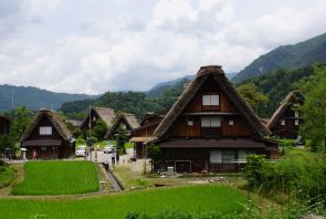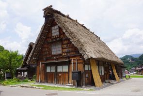 ●白川郷は、いずれも飛越地方庄川流域の地名で、今回は白川村の上流域を訪れることとなる。この白川郷は合掌造りの建築物で有名であるが、合掌造りの名の由来は、掌を合わせたように三角形に組む丸太組みを「合掌」と呼ぶことから来たと推測されているとのことのようだ。