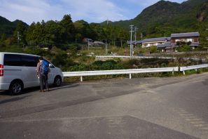 ●この遠征2日目の山行きは、和歌山県の新宮市にある笠丸山に向かうこととなった。この山は前回の遠征で市北部の相賀集落から登頂を目指したが、道中で道に迷い断念した経緯があったので、今回は「分県登山ガイド 和歌山県の山」に紹介のある市南部のJR紀伊佐野駅から塩見峠を経由するルートでの山行きとなる。なお、本に紹介のあったルートは、JR紀伊佐野駅から長く車道の舗装道を歩くこととなっていたので、行程の時間短縮のため那智勝浦新宮道路の橋梁下まで車を走らせ、ここの路肩に駐車し山頂を目指す。