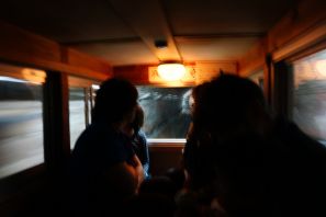 車内は狭く暗く横揺れ