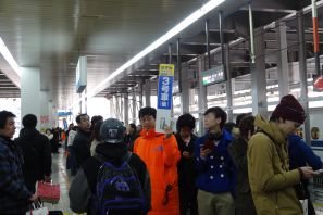 山陽新幹線・広島駅 精算所では多くの乗客が 長蛇の列を作っていた |