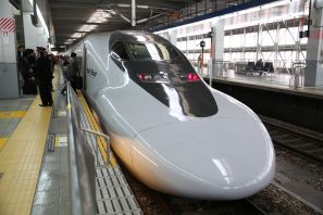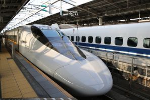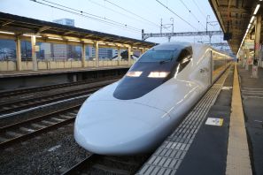 山陽新幹線・厚狭駅 11分間の停車時間中に 通過車両の撮影練習を行う |