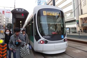 広島電鉄本線路面電車 広島駅からこの日に宿泊の ホテルに向かうため乗車 |