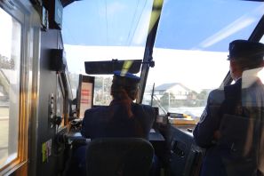 | 日豊本線・特急にちりん4号 乗務員室の直ぐ後ろの席に 座り前面眺望を楽しむ |
