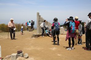 ●当方、久しぶりに一眼レフ1号機を持ち出し重装備で気合い十分であったが、メンバー皆の缶ビールが入った重いザックを背負わされたことから、歩き始めからの北尾根道の急勾配で早々に息が上がる。数度の小休止を経てメンバーに迷惑を掛けることなく何とか山頂に到着したが、お目当ての葛城高原のツツジの開花はまだ先で残念な結果となってしまう。