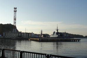 海上自衛隊の軍艦を望む