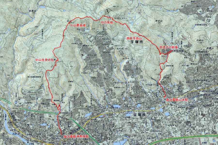 中山最高峰(478m)(昼食)→中山寺奥之院(休憩)→阪急電鉄清荒神駅
