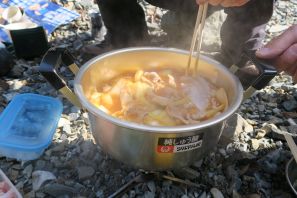 ●この日は納会がメインとのことで、缶ビールや日本酒を背負わなければならなかったので、この秋に新調した55リットルのザックもこの度急遽に山行きデビューするとなる。この日のコースはこの山の一般的なハイキングコースであったが、流石にザックがかなり重く、歩き出すにつれ遅れながらの山行きとなったが、何とか山頂を経て納会場所の河原に何とかたどり着くこととなる。
