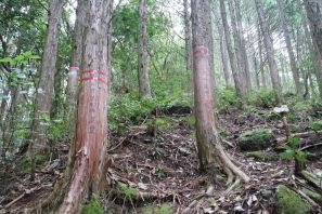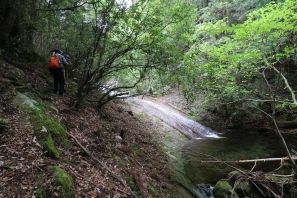 ●遠征の2日目は、前日と打って変わって空は厚い雲に覆われ、今にも雨が降り出しそうな天候だった。この日の天気予報は昼前から雨とのことで、取り敢えず最寄りの登山口に向かい大蛇峰山頂を目指したが、道中で雨が降り出し途中で登頂を断念することとなる。