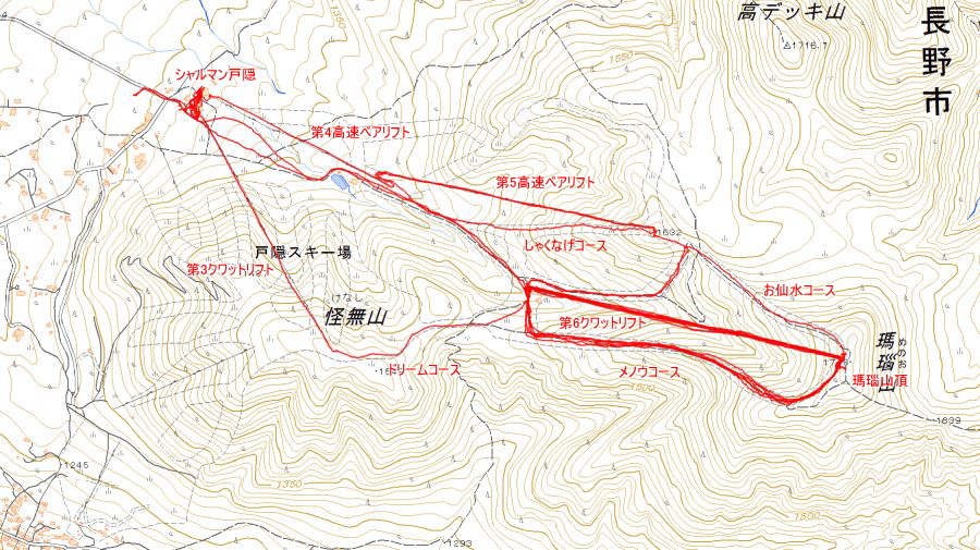 | リフト乗車を含めた初日の総移動距離は 30.298km |
