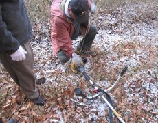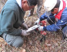●昨年と同じ場所で原木となりそうな木を探し、今年も例年と同じ5本の原木を倒すこととなった。なお、作業の途中にチェーンソーのチェーンが外れたり、切れ味が悪くなりチェーンを取り替えるなど、色々と想定外の出来事などがありやや手間取ることとなる。また、例年は原木を倒すだけで初日の作業は終了となるのだが、今年は引き続き、原木を約90cm程度に切り出す作業をお昼前までにまで終えることができた。したがって後日の菌入れ作業や運搬作業はスムーズに進みそうだ。