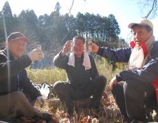 ●宴もあっという間に進み、気が付けば時間も午後4時を過ぎ、長い反省会もここで開きとなる。作業場所からの撤収を終えメンバー各自帰路へと着くこととなる。また、例年と同様に切り出した原木は暫く乾燥させる必要があるので、この原木に菌を入れる作業は3月中旬に改めて行うこととなる。なお、この記録は後日改めて紹介します。