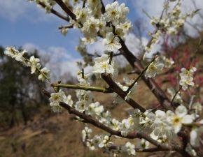 ●「2月は梅」と個人的に勝手に思っていたが、今年は寒さの厳しい日が続いたことから、3月の終わりになってやっと梅の見頃となったようだ。ザックに入れた当方メインの一眼レフカメラ「SONY α77」にて先のスキーツアーと同様に撮影を行う。なお、天気が良かったのはここだけで、その後はこのカメラはザックに収納したままとなる。