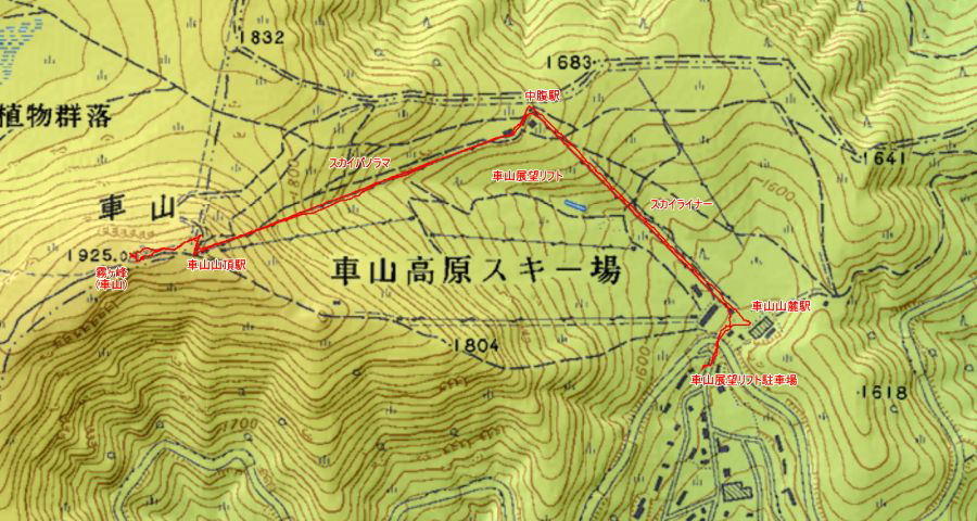 車山展望リフト駐車場 → 車山山頂駅 → 霧ヶ峰(車山山頂)(1,925m) → 車山展望リフト駐車場