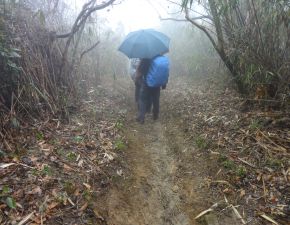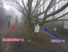 ●山頂付近の複数のテレビ塔を経てからは、信貴生駒縦走コースにて奈良街道の分岐点となる暗峠へと向かう。今回も信貴生駒スカイライン展望台公園の東屋で昼食となったが、残念ながらここでも天気の回復もなく眺望は望めず、唯々寒さを耐える時を過ごす。また、前回と同様、信貴生駒縦走コースは道はぬかるんでおり、足元に気を遣いながらの歩行の連続となる。なお、暗峠からはこれまでとは一変し、舗装道の国道308号を一気に下り、枚岡公園を経て近鉄奈良線枚岡駅に到着し、悪天候の中での山行きを無事に終える。