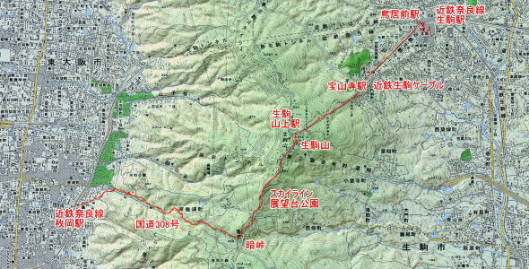 スカイライン展望台公園(昼食)→暗峠→近鉄奈良線枚岡駅