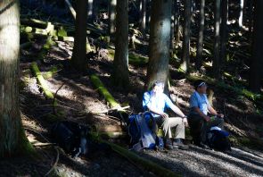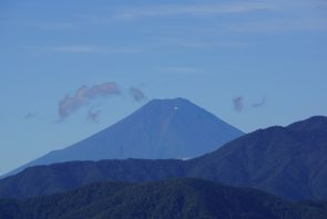 ●このコースは往復20kmを超えるロングランであったが、急登は山頂手前の岩尾根付近のみで、道中の殆どが整備された勾配の緩い登山道であったため、前日の両神山登頂とは違い、それ程身体の疲れを感じることはなく登頂を果たすこととなる。なお、この日の早朝は天気も良く山頂での眺望を楽しみにしていたのだが、道中に富士山と南アルプスの山々を少し眺めただけで、両神山と同様山頂に近づく頃から濃いガスがかかり、雨が降り出しそうな天候に変わる。山頂に到着後、この日も暫く天候の回復を待ったのだが、快方の気配もなかったことから仕方なく下山することとなる。