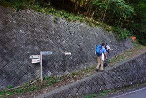 ●「道の駅たばやま」を出発し、約10分程で登山口最寄りの山梨県と東京都境の鴨沢の集落付近に到着するが、行程の短縮を図るためここから更に舗装道を北上し小袖乗越登山口付近まで車で向かう。地図に駐車5〜6台と標記されている場所に運良く駐車スペースがあったのでここに車を止め、身支度の後ここから山頂へと向かう。