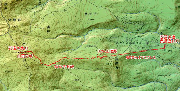 安達太良奥岳登山口→リフト山頂駅→仙女平分岐(休憩)→頂上分岐→