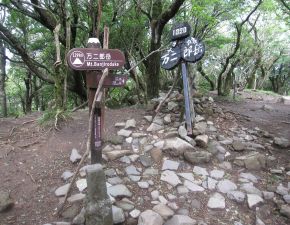 ●山の地図では「天城山」と記されているが、この名の山はなく、最高峰の万三郎岳・万二郎岳などの天城連山を総称していることのようだ。また、四辻の分岐点から時計回りで先に万二郎岳山頂から周遊するコースと、反時計回りで先に万三郎岳山頂から周遊するコースがあるが、どちらも所要時間は変わらない。なお、結果的には万三郎岳山頂前のルートの勾配がきつかったことから、万二郎岳からのルートを選択して正解だったようだ。