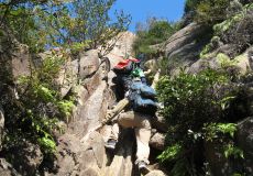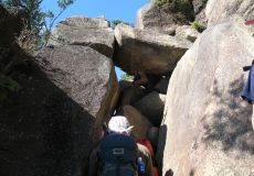 狭い岩の隙間を潜る