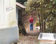 ●月輪寺で小休止の後、再び急坂を下り林道出合へと向かう。当方、先頭集団で先に下り、林道出合で時間があるものと思い、付近の河原で用を足していた。第2集団がまだ下りてきていないものと思いこみ悠々と戻りきや、メンバー全員が到着しており結果的に時間をロスしてしまうこととなる。