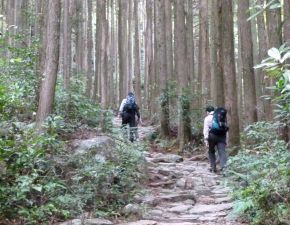 ●今遠征の2日目は、三重県尾鷲市まで足を伸ばし市街地近くにある「便石山」を登頂することとなった。なお、この山は今回同行していないメンバーの「テルさん」のアドバイスで、熊野古道の散策と山頂付近にある巨岩「象の背」からの眺望が絶景であるとのことからここへ向かうこととなる。