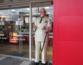 ●さらにシーンを変え、ここでは接写と人物での撮影結果をそれぞれ比較をする。コンパクトなデジタルカメラの割りに撮影も上手くでき、当方も納得しているところである。また、どちらのカメラも画像に大きな差はなかったようだが、敢えて言えば上段のLUMIX FX700のお花の画像について、花びらの白色がややつぶれ気味に見える気がするところである。この原因は、レンズがIXYより広角であることである?ようだ。なお、人物については、本来は美女をモデルに撮影したかったのだが、流石に協力してくれそうな人がいなく、残念ではあるが今回はカーネルおじさんに協力をお願い?した。