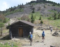 ●この山の登頂コースは、上記の今回歩いたコース以外にも複数あるのだが、最終日とあってこれまでと同様に最短のコースを選択する。なお、本日は、往路は表登山道で復路は山頂付近の雷岩から唐松尾根を下るルートで、今回の遠征で始めて登山道を周遊するコースとなった。