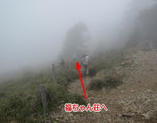 ●この山の山頂は、樹林に覆われ眺望はなかったので記念撮影のみでここを後にする。雷岩で小休止をしている時にガスが掛かってきたので、足早に下山を始め今遠征での山行きを無事に終える。これで、富士山(静岡県境でもあるが)を除く山梨県の日本百名山登頂を果たすこととなった。