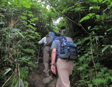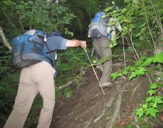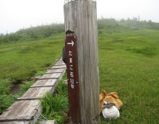 ●前日の夕食時に宿のお兄さんから登山道の概略の説明があり心づもりはしていたのだが、登り始めからいきなりの急登で、それが約2時間続いたのは流石に身体に堪えたようだ。また、登山道は足元が悪くズボンの裾を泥だらけにしながら何とか玉子岩分岐に到着する。