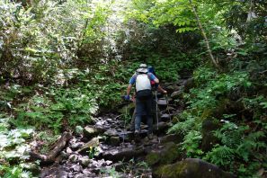 長い登山道での下山は