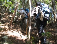 ●天気は昨日同様良好で、また、風もなく絶好のコンディションだったのだが、コースは殆ど樹林に覆われ、残念ではあったが眺望は名称の無い展望所以外は望むことができなかった。なお、登山道は登頂者が少ないのか全般的に荒れており、また急勾配であった。