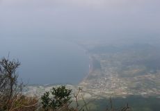 ●登山口から5合目当たりまではごく普通の登山道であるが、7合目付近から視界が開け東シナ海が展望できる。また、これからは岩場が多く歩行に気を遣ったが、登るにつれ山腹を周回コースとなるため、薩摩半島の海岸線、池田湖並びに付近の町並みを楽しむことができる。今回残念ながら、全般的にモヤがかかっていたため眺望が今ひとつであった。
