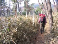 ●横尾山へと向かう道はクマザサに覆われており、山頂は樹林の中で休憩スペースもほとんどなかった。また、能勢の郷へ向かう下り道も急な岩尾根となっており、コースとしてはあまりお奨めはできない。