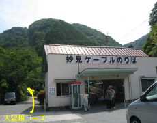 国道477号交差点→黒川ケーブル駅→大堂越→妙見山(660m)→妙見の水広場前
