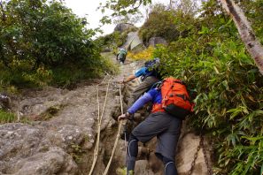 燕温泉バス停 →温泉源泉管理小屋(休憩) →5合目 →天狗堂(休憩) →クサリ場