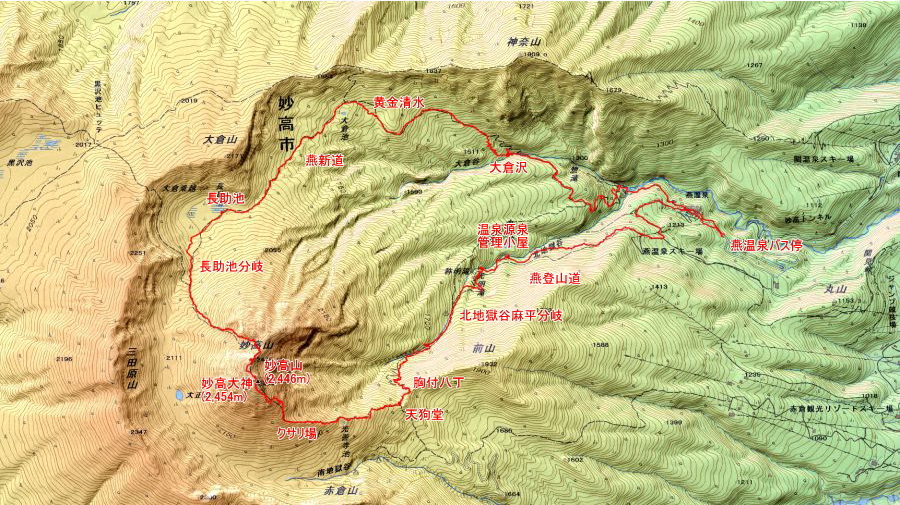 妙高大神(2,454m) →妙高山(2,446m)(大休止) → 長助池分岐(休憩) →