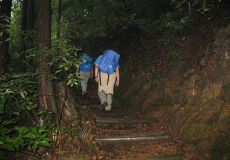 ●10分程旧村落の狭い路地を歩き登山口に到着する。登山道は整備された道であったが後半は急な上りが続く。所々に視界が開け市街地が一望できるポイントがあったのだが、残念ながらこの天気では眺望は望めなかった。