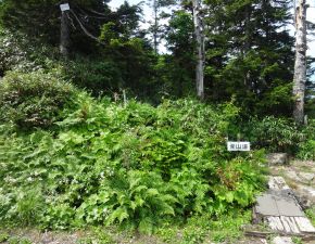 ●リフト終点の北望台から山頂までのコースタイムは片道約95分で、また標高差は約220m程となっているが、細かなアップダウンがあり遠征の最終日には十分な内容であったようだ。この日も天気が心配されたが道中に降雨はなく、山頂の手前の天狗岩では吾妻連峰の眺望を十分に楽しむことができた。ただし山の地図に記載されていたとおり、山頂では辺りの眺望は全くなく記念撮影のみでここを後にする。