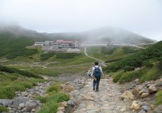 ●宿泊地の福地温泉民宿を出発し、約20分程で朴の木平バスターミナルに到着する。ここからの乗鞍スカイラインはマイカー規制があるためシャトルバスにて畳平へ向かう。所要時間は片道約40分、バス料金は往復大人2,000円であった。