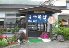 ●登頂断念が決まった以上、我ら「軟弱登山隊」が考えることは、勿論、「温泉と食事」。よって、思考錯誤の結果、「御嶽明神温泉 やまゆり荘」で入浴、その後は「開田高原名物の蕎麦」を食すこととなった。この決断はいつもになく早かった。なお、蕎麦は、蕎麦工場での試食とそば処での2カ所で味わった。