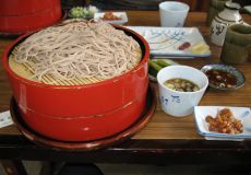 ・そば粉50gを片手鍋に入れて熱湯80ccを注ぎ、火にかけながら、割箸数本で手早くかき混ぜる。おろし生姜とねぎ、又はおろしワサビと食す。 とのこと。