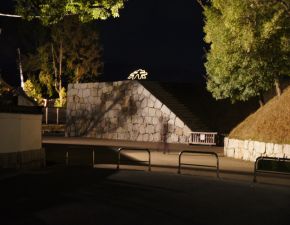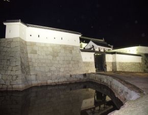 ●赤穂城は、1483年頃に岡光弘によって築城されたと言われており、「赤穂浪士の討ち入り」や「忠臣蔵」で全国的にも有名である。本来は赤穂城には天守閣は存在しないが、2006年から赤穂義士祭奉賛行事として赤穂義士祭が行われる12月14日までの数日間、天守台に天守風の外観になるように建設足場用の鋼管を組み、電球を配線し夜間点灯されている。なお、今年は、12月13日(月)〜14日(火)の2日間のみとのことであったので、14日に仕事を終えた後に、同僚の車を利用し訪れることとなる。
