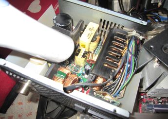 ●電源の落ちるタイミングが区々だったので、パソコン本体にインストールされているアプリケーションが原因とは考えにくく、やっぱり電源ユニットではないかとの思いから、本体のケース側面を開け取り敢えずユニット内の清掃を行う。