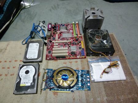 ●なお、ここでの各種パーツ購入の追加費用は、グラフィックボード(4,980円・新品)・マザーボード(9,980円・新品)・メモリ(3,990円・新品)・CPU(14,000円・中古)で計32,950円となり、先に購入したパーツの費用の合計を含めると45,301円となってしまった。