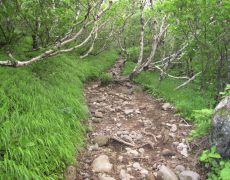 利尻北麓野営場登山口→五合目→七合目(七曲)→八合目(長官山1,218m)→