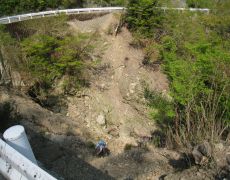 ●当初は、約2時間程で登頂できる倉元橋辺りからの予定で車を止め準備をしていたのだが、後から来た6人組の団体さんから「上の水呑峠からの方が楽ですよ!」とのアドバイスから、我々も水呑峠登山口へと向かうこととなった。しかしながら、途中県道が土砂崩れで行き止まりとなっていたので、仕方なく路肩に車を止め歩くこととなる。