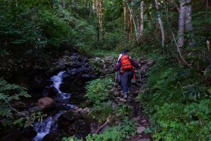 ●前日の朝にリーダーのマイカーに同乗して自宅を出発し、中国道・名神道・中央道等の長い車での道中を経て、高妻山の最寄りの登山口の戸隠キャンプ場に到着する。なお、高妻山は長丁場の行程であることからここで前泊し、英気を養い山頂への登頂を目指すこととなる。