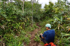 ●この山は、山の地図では所要時間が8時間35分で、また標高差1,150mとなっており、予想どおり遠征に向けての事前の訓練もなく、また、山行きが約4か月近くブランクのある状況の中での登頂だったので、天候には恵まれたものの身体の疲労も募り散々であった。登りでは足が度々足が止まり、下りでは足の踏ん張りか効かず転倒するなど、リーダーにはかなりの迷惑を掛けたようだった?が、何とか大きなトラブルもなく今回遠征での一つ目の山行きを無事に終える。